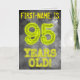 The front of this spooky looking, customisable birthday card design features the message "95 YEARS OLD!" with characters and digits having an eerie glowing aura inspired appearance, on a mysterious grey cloudy mist-inspired background pattern. The front also features a customisable recipient name. The inside features an editable birthday greeting message. A customisable birthday greeting card like this might be a special way to send a birthday greeting to somebody celebrating their 95th birthday. [~Z0000365]