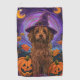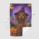 Spooky Goldendoodle Dog Halloween Witch Pumpkin Golf Towel