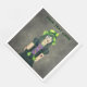 This paper napkin is dark grey with a spooky Gothic girl in black and purple dress with green hat, spiderweb tattoo on face and purple moon on her arm. Customise your text with the template.