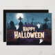 Create the ultimate spooky vibe with this Halloween invitation featuring a moonlit graveyard and ghosts.