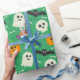 Get ready to spookify your Halloween gifts with this fun and festive wrapping paper! Featuring a playful pattern of friendly ghosts, flitting bats, and grinning skulls on a vibrant green background, this design is perfect for adding a touch of spookiness to your celebrations. Whether it's for trick-or-treating candy, Halloween party favours, or just a spooky surprise, this wrapping paper is sure to delight.