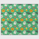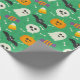 Spooky Green Ghost, Bat & Skull Halloween Wrapping Paper