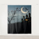 Halloween party backdrop or background for party decor or photo booth with haunted house, mountains, moon, bats, bare tree. Fun party photography prop for selfies or portraits.