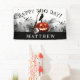 This spooky Halloween birthday banner is perfect for a Halloween birthday party. These banner for Halloween birthday feature a black splotched ink background with a fiery jack o'lantern, human skull, black crow, and a witches broom. Text says "Happy Boo Day." Personalise with the name of your choice.