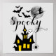 Spooky Halloween Haunted House with Witch and Bats Poster