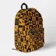 Perfect for t-shirts, tote bags, posters, party decorations, and more. This seamless design features all the Halloween classics — pumpkins, bats, ghosts, witches, skeletons, black cats, candy, spiderwebs, and haunted houses — in a striking black and orange chequerboard style.