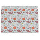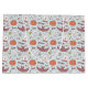 This design is a Halloween-themed pattern with a whimsical and playful design. The background colour is a soft pastel blue, and it is filled with various Halloween icons and symbols.