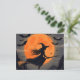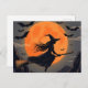 Spooky Halloween Orange Moon Witch Flying Holiday Postcard