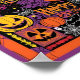 A vibrant and intricate illustration of Halloween patterns, featuring a variety of iconic symbols such as jack-o-lanterns, bats, spiders, and cobwebs, set against a warm and eerie orange and purple background, with bold lines, geometric shapes, and stylised fonts, incorporating shades of black, yellow, and red to create a festive and spooky atmosphere, with intricate details and textures that evoke the spirit of the Halloween season.