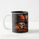 Spooky Halloween Scene with Pumpkin, Witch, Moon Two-Tone Coffee Mug