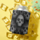 A spooky gothic Halloween skull decorates the front and back of a can cooler. Add your name to the bottom. This would also make a great Halloween party favour or door prize.