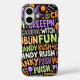 Get into the Halloween spirit with this fun and festive phone case. Covered in spooky and playful Halloween-themed text, like "Creepin," "Goblin Fun," and "Candy Rush," this case is perfect for anyone who loves the holiday. The vibrant colours and eye-catching design will make your phone stand out.