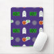 Show your spooky side on Halloween and all year 'round if you dare with this playful Halloween pattern. Design features an orange Jack-o'-lantern saying "Happy Halloween", spider web, slimy green "Boo!" phrase, and a ghost sheet; purple background. Makes an excellent accessory for the office or workspace on Halloween, and a fun gift to friends who love the spooky season.