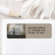 A spooky tree stands against the backdrop of a huge moon. A black raven sits in its branches and several bats fly in the air. The “Happy Halloween” can be changed or deleted if desired.