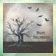 A spooky tree stands against the backdrop of a huge moon. A black raven sits in its branches and several bats fly in the air. The “Happy Halloween” can be changed or deleted if desired.