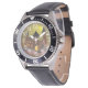 My husband loves the watch, he likes the dial, the graphics, the band, and it keeps perfect time.