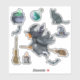 This hand-drawn watercoloured Halloween witch-themed set of stickers featuring a witch on a broom, black cat, potion bottle, witches broom, bubbling cauldron, witches hat and a candle and bats are perfect for Halloween. You can choose between matte white or glossy transparent vinyl; please note that white ink is not printed on either substrate. The stickers removable, low-tack adhesive leaves no sticky residue, they are printed with solvent inks that are fade-proof, water-proof and scratch-resistant, making them compatible with and ideal for decorating water bottles, helmets, cars, skateboards, bikes, laptops, phones, tablets, binders, notebooks, journals, lockers, water bottles and more! They are available in 6 different sizes, there is a 0.125" border around each sticker to help it stand out against any background! © Julie McIver