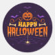 Celebrate the spooky season in style with this vibrant Happy Halloween Sticker! Featuring a glowing jack-o'-lantern, bats, and festive typography, this round sticker is perfect for Halloween parties, treat bags, spooky invitations, decorations, and more.