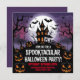Set the perfect eerie tone for your Halloween party with this spooky haunted house invitation! Featuring a dark, haunted mansion under a full moon, glowing jack-o'-lanterns, flying bats, and foggy trees, this invitation is ideal for a ghostly, spine-chilling event. Personalize with your party details and invite guests to a spooktacular night of fun