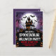 Set the perfect eerie tone for your Halloween party with this spooky haunted house invitation! Featuring a dark, haunted mansion under a full moon, glowing jack-o'-lanterns, flying bats, and foggy trees, this invitation is ideal for a ghostly, spine-chilling event. Personalize with your party details and invite guests to a spooktacular night of fun