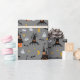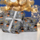 A playful haunted house pattern featuring spooky castles, glowing ghosts, creepy trees, bats, and crescent moons on a grey backdrop. This Halloween wrapping paper is ideal for party favours, October birthdays, trick-or-treat gifts, or festive seasonal surprises.
