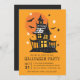 Invite guests to your Halloween party in style with our Spooky Haunted House party invitations. The invites feature a black haunted house surrounded by bats and stars with the sun setting in the background. Personalise the haunted house invites by adding your party details below. The invite reverses to a solid charcoal background. Perfect invites for both adult and children's Halloween parties.