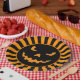 Add a touch of spooky fun to your Halloween party with these bold Jack-O'-Lantern paper plates. Featuring a creepy pumpkin face with orange and black stripes, these plates are perfect for serving treats at your Halloween gatherings, haunted house events, or trick-or-treat parties. Durable and festive, they are sure to bring a ghoulish charm to any Halloween celebration.