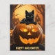 Send eerie greetings with our Happy Halloween Postcard, featuring a captivating illustration of a massive jack-o-lantern pumpkin with a perched black cat on top, all against a spooky backdrop. The design is completed with a "Happy Halloween" text at the bottom. This postcard offers a personalised touch, as the template allows you to add your own message or leave the field blank. Capture the essence of the season and share the thrill of Halloween with this customisable postcard.