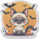 Playful Siamese kitten sticker in kawaii chibi Halloween style, great for cat lovers and festive crafts.