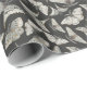 Spooky Halloween wrapping paper features a pattern of white moths on a dark smoky background.