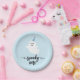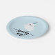 Spooky one cute ghost Halloween 1st birthday paper plate. Modern Halloween-themed design for a spooky party! This birthday paper plate features a happy ghost wearing a blue party hat with a baby blue background.