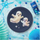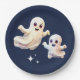 Spooky one cute Halloween Birthday Paper Plates with illustration of a two cute little ghosts, stars and night sky clouds. Perfect for October Halloween kids birthday celebrations specially spooky one the first birthday or baby shower.