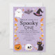 Celebrate your little boo with a spooktacular birthday bash! These adorable kids' birthday invites feature a cute ghost, black cat, pumpkin, witch's hat, skull, bat, and some candy against a light purple background—perfect for a party as sweet & playful as your little one! Order now & let the hauntingly good times begin!