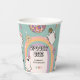 Retro Spooky One Halloween 1st Birthday Party Paper Cups- Let's get Groovy! Design features a colourful background with a boho rainbow. Cool retro illustrations decorate the simple template with adorable hippie ghosts, skull flowers, spooky disco ball and spooktacular candy.