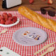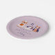 Cute Halloween theme birthday party paper plate for kids featuring illustration of dogs and cat in costumes (bat, ghost, and vampire). Customise this product by adding the child's age and name.