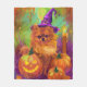 Spooky Pomeranian Dog Halloween Witch And Pumpkin Fleece Blanket
