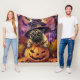 Spooky Pug Dog Halloween Witch And Pumpkin Fleece Blanket