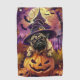 Spooky Pug Dog Halloween Witch And Pumpkin Golf Towel