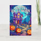This card features a spooky house guarded by some well-lit pumpkins. Please feel free to edit the text to make this Halloween card personal and one of a kind.