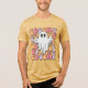 This fun and festive Halloween design features a classic ghost illustration front and centre, surrounded by the word "Spooky" repeated in a bold, bubbly font. The text is layered in vibrant, retro-inspired colours like soft pinks, purples, and oranges, creating a playful contrast against the ghost's simple white figure. The ghost's expressionless black eyes add a touch of eerie charm, while the wavy, stacked typography gives the design a groovy, nostalgic feel.