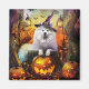 Spooky Samoyed Dog Halloween Witch And Pumpkin Magnet
