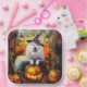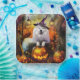 Embrace the Halloween spirit with this enchanting design featuring a cute dog in a witch hat surrounded by carved pumpkins. Perfect for adding a touch of spooky charm to your festive celebrations.
