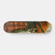 S spooky scarecrow wearing an orange hat and plaid shirt stands ominously. its skeletal face adds a chilling touch to the autumn atmosphere.