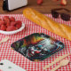 Halloween party paper plates with ai art depicting a scary clown surrounded by jack-o-lanterns.
