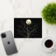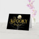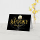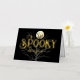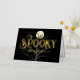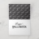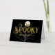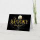 This design features the phrase "It's Spooky Season", along with the image of a bare tree and full moon. The inside of the card includes a tiled Halloween seamless pattern of iconic Halloween graphics on the inside top, and a simple greeting of "Happy Halloween" on the inside bottom. All of the fonts, and text may be customized. The seamless pattern on the inside top can be adjusted for size, but not color. The tree and moon on the front of the card may be adjusted or changed.