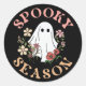 Spooky Season Retro Halloween Groovy Ghost Black Classic Round Sticker