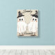 Celebrate the magic of Halloween with this enchanting stretched canvas print featuring two ghostly companions dressed in classic white sheets and striped witch hats. With rosy cheeks, striped stockings, and a hand-in-hand pose, these whimsical spirits bring warmth, charm, and a touch of mischief to any wall.