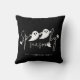 Add a stylish Halloween touch to any space with this spooky season pillow, featuring white ghost silhouettes as the O’s in “spooky,” styled in a thin script font with extra floating ghosts on a black background. Personalise the text area with a family name or a phrase you like to create a chic and festive accent.