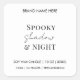 Create an enchanting, moody vibe for your Halloween and autumn candle collection with this Spooky Shadows & Night customisable candle label. Featuring a crisp white background and a refined mix of serif and handwritten script fonts, this design is ideal for branding soy candles, wax melts, and seasonal scents. Perfect for artisan candle makers, small businesses, and fall market displays. Personalise with your brand name, scent details, size, and burn time for a clean, professional finish. Works beautifully for Halloween nights, autumn evenings, and gothic-inspired home decor.