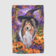 Spooky Shetland Sheepdog Halloween Witch Pumpkin Golf Towel